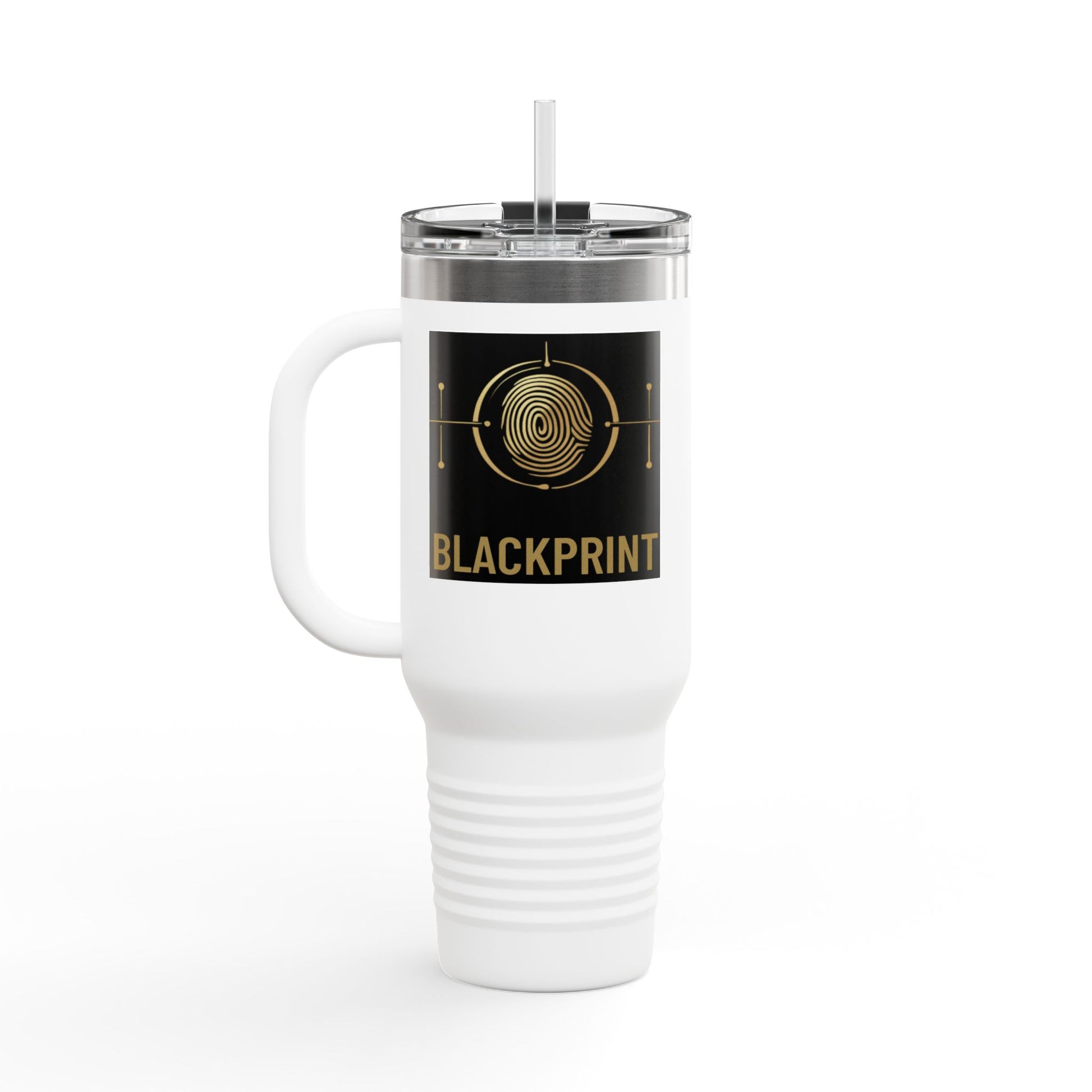 Our 40 oz BlackPrint insulated travel mug is built for long days and steady movement. Stainless steel construction and double-wall insulation keep coffee hot and iced drinks cold for hours, whether you are commuting, traveling, or moving through a full schedule.